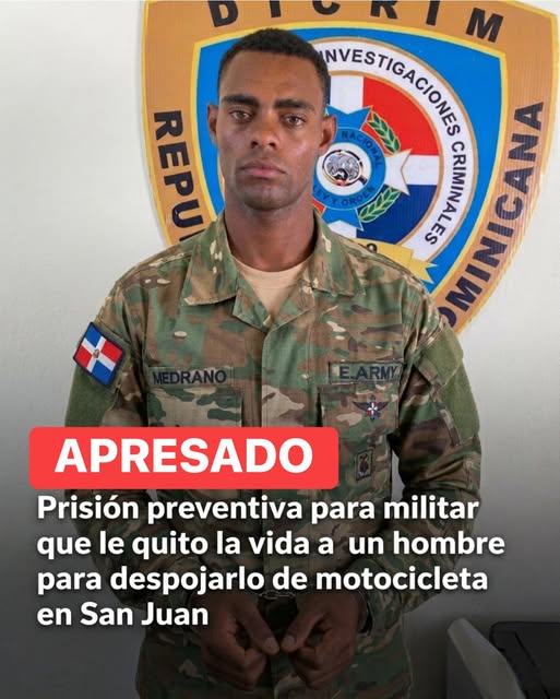 Diario al Día, San Juan, República Dominicana- Un juez ordena prisión preventiva contra un militar acusado de causar la muerte de un hombre para despojarlo de su motocicleta en marzo.