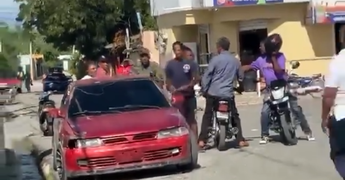 Cuatro personas incluida una menor de edad se enfrascaron en un pleito Cuerpo A Cuerpo con el seguridad en la fortaleza 19 de marzo de esta ciudad de Azua, cuando lo… pic.twitter.com/bVYClYZaqC