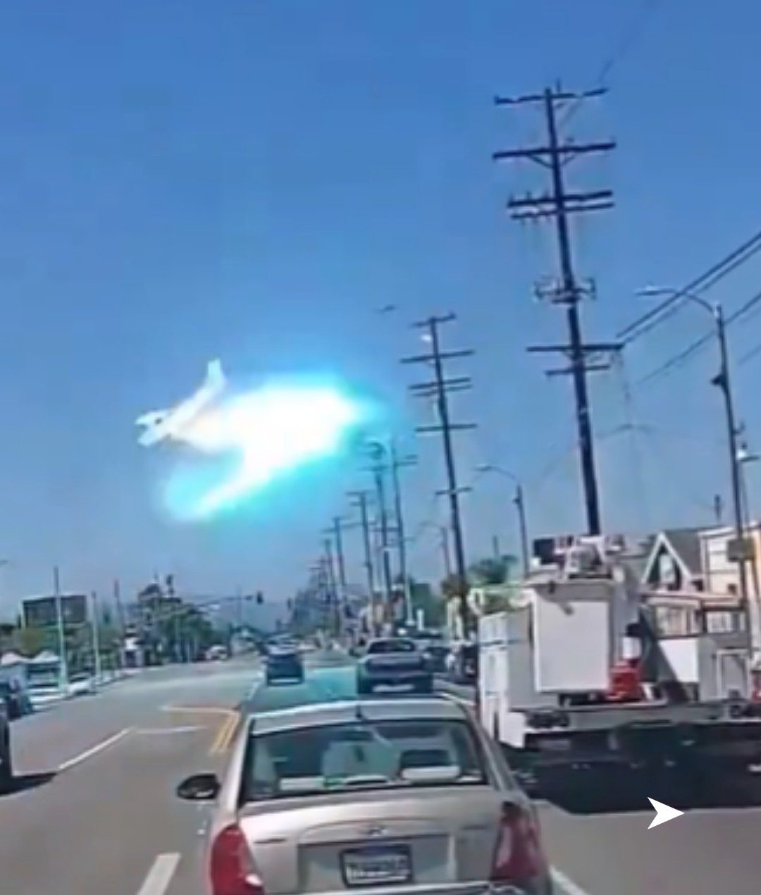 Las imágenes muestran cómo el aparato entra en contacto con cables de alta tensión durante el ascenso inicial.